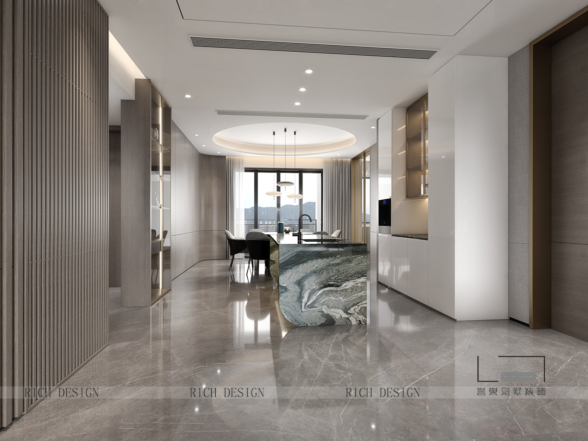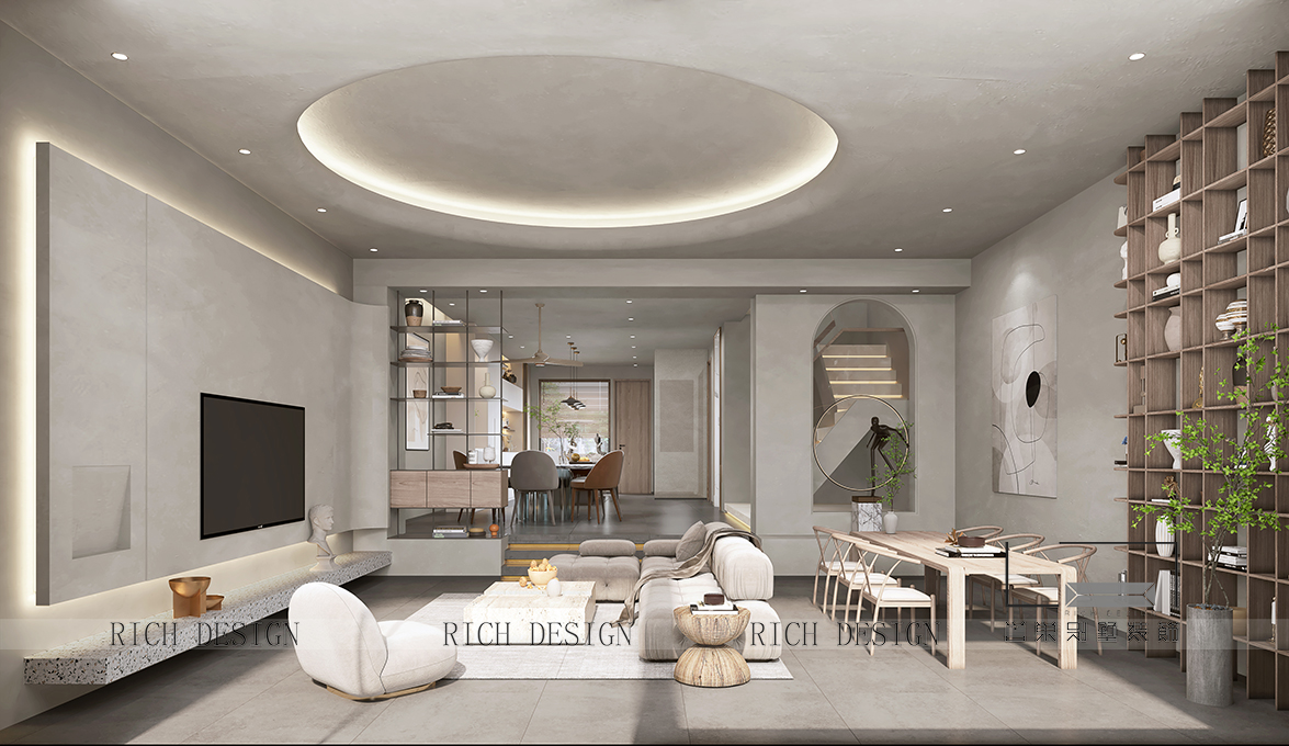 革新 生活從空間規劃到材質語言,逐步形成生活場景的界面,設計師從地理位置及文化記憶出發,從自然中提取配色和材質的靈感,以超越傳統樣板間的形態,精致打造一處時代革新的高品質高配套的棲居之所。金迪世紀駐深圳南山區華僑城版塊,以其得天獨厚的地段價值,背山面海,擁享“一城一灣,兩園三山”的豐富生態資源。出則都市繁華、入則小隱于市。▲客 廳一樓客廳為兩層挑空空間,尺度上的把控給予空間更多的舒適性,入戶映眼所及...